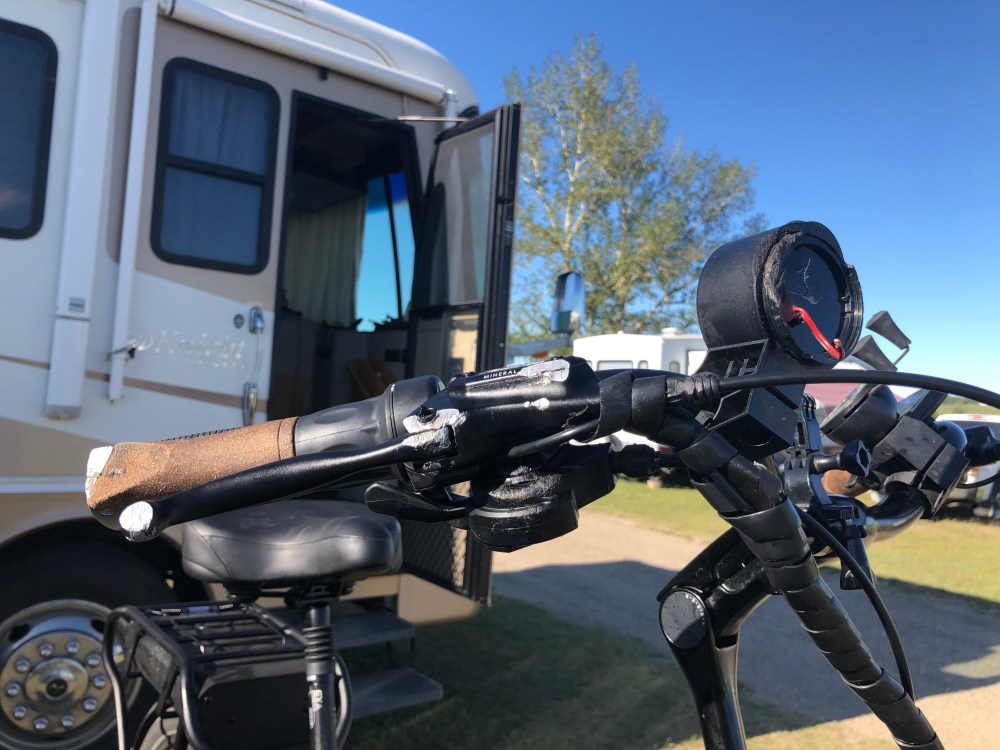 1. Much praise for the Pedego folks up there. Doubt if you would get that kind of quick help down here. Bike “grip” does look a little strange, but if it works, that’s a good thing. Enjoy the journey. Looking at Calgary on line.. that’s no “country town.” It’s pretty much a big city…am sure you will be glad to get going again…