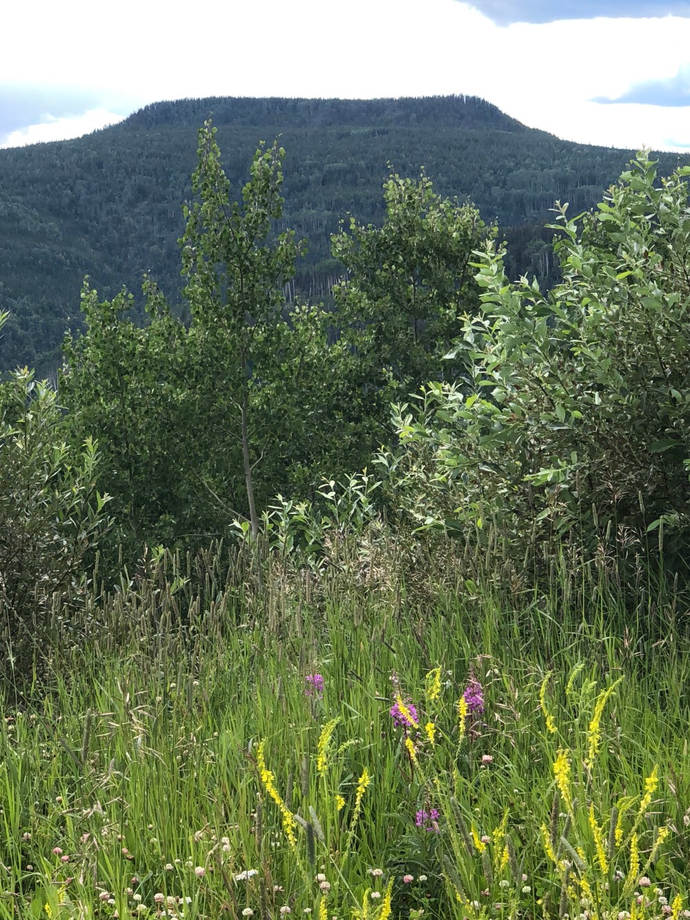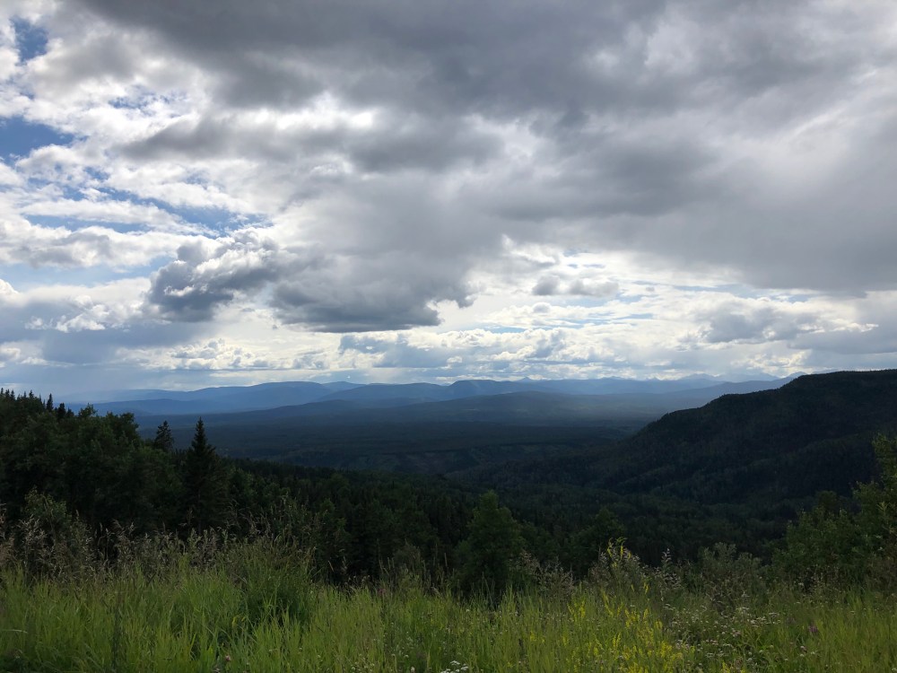 Left Coffee Creek RV Park in the morning in the rain and wind! While not pleasant, we managed to drive out of it and into the sunshine in a couple of hours. Coco even found a good spot on the dash to nap in the sun. We stopped in Fort Nelson for lunch and stopped again at a viewpoint overlooking Muskwa River Valley. We’re definitely out of the plains and into the trees. Cell and internet is getting very spotty. We stopped for the night in Tetsa at the Tetsa River Services and Campground. They say they are the “Cinnamon Bun Center of the Galactic Cluster”. Yum- cinnamon rolls for breakfast!!