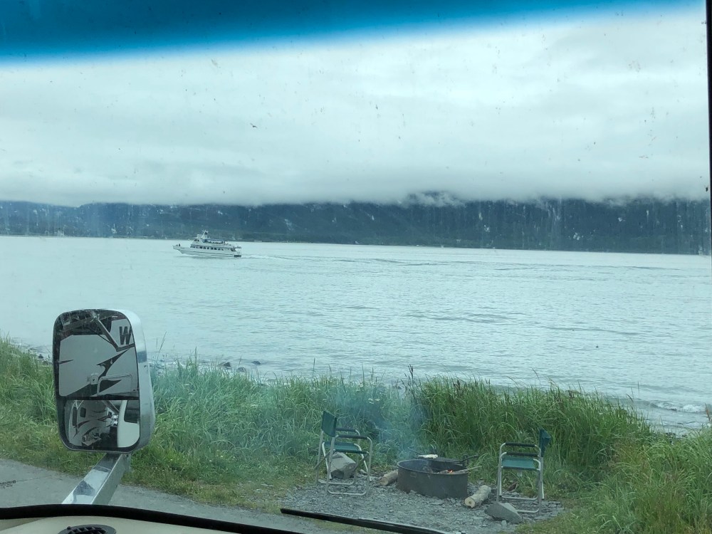 7/29/18 Drove from Anchorage to Seward today along the Seward Highway, a national Forest Scenic Byway. The scenery was beautiful, but the traffic and wind made us hesitate to pull off for photos, so there is only one. We camped in Seward at one of the city campgrounds right on the bay. Watched the boats coming and going. Tomorrow we’re taking a day trip on one of them!