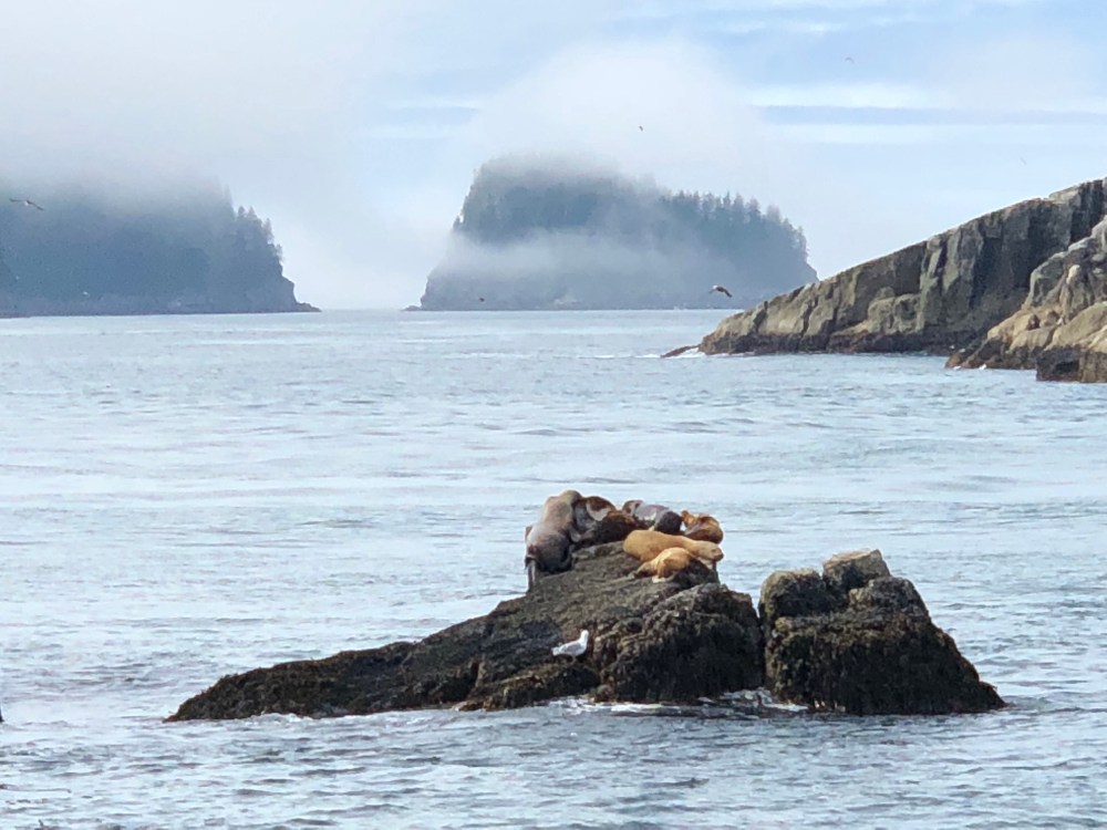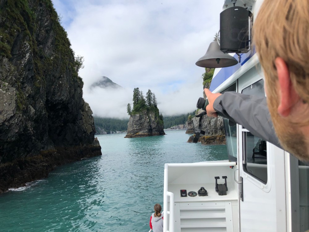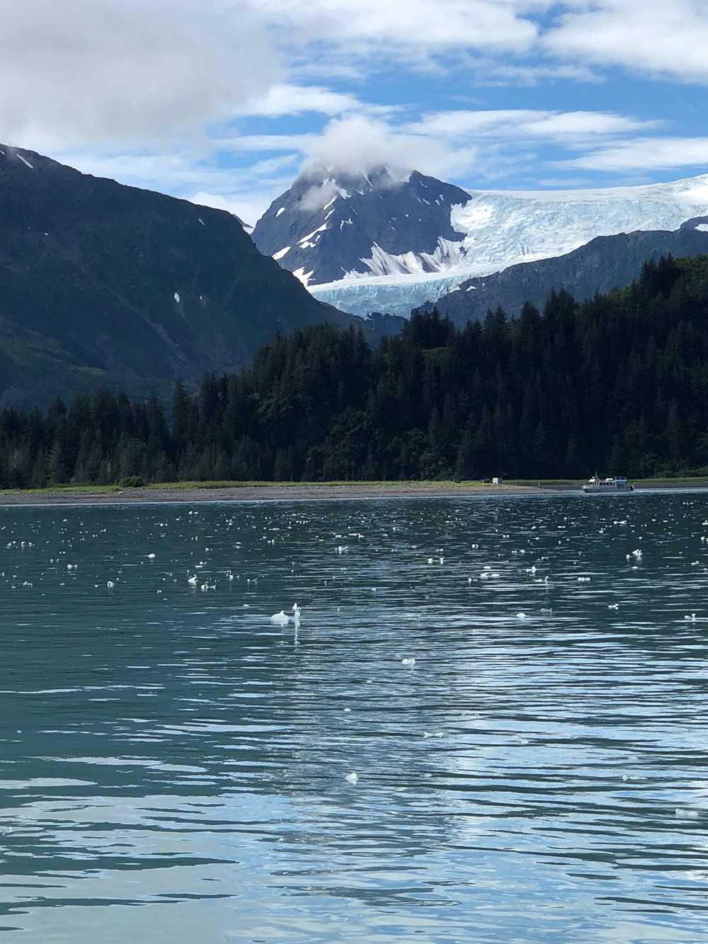 We also saw puffins, bald eagles, cormorants, and briefly saw a humpback whale and porpoises. The weather couldn’t have been better. Of course we had to celebrate with an Alaskan Sunrise (vodka, orange juice and cranberry juice) made with actual glacier ice plucked from the ocean water with a net by one of the crew members!