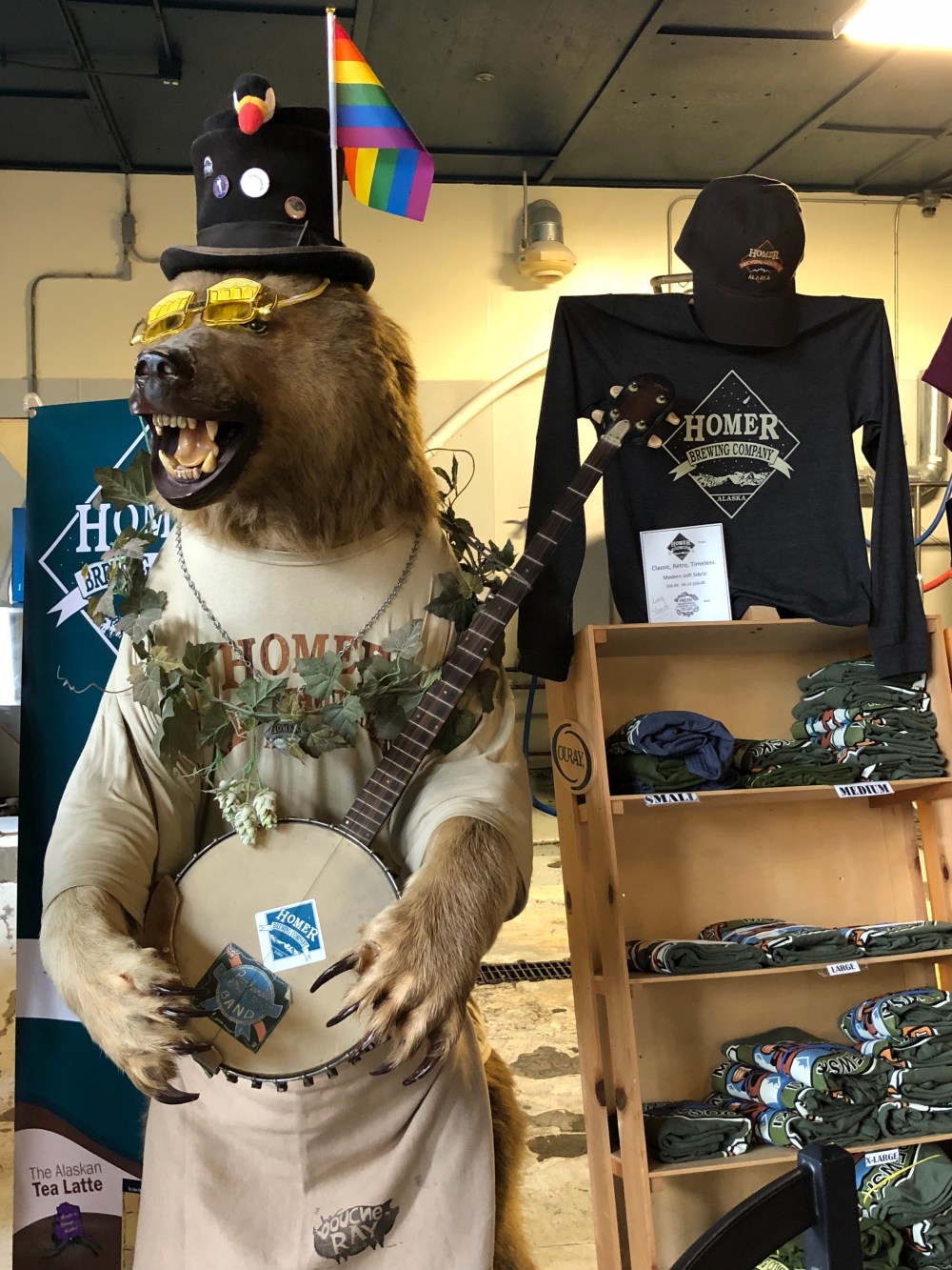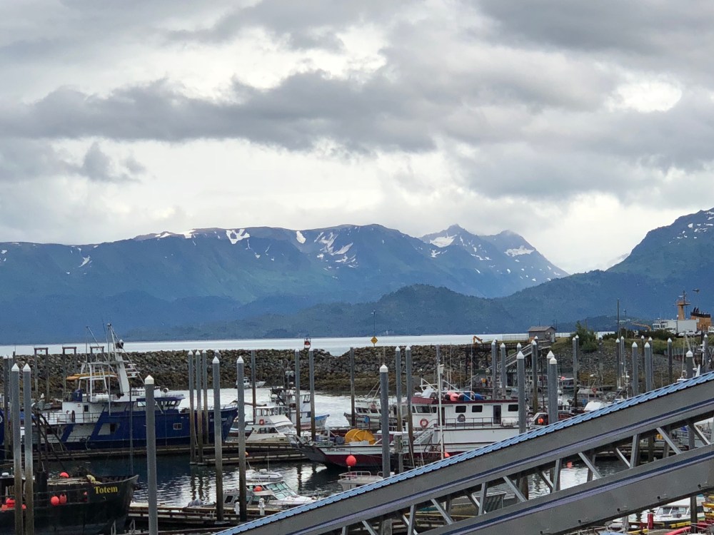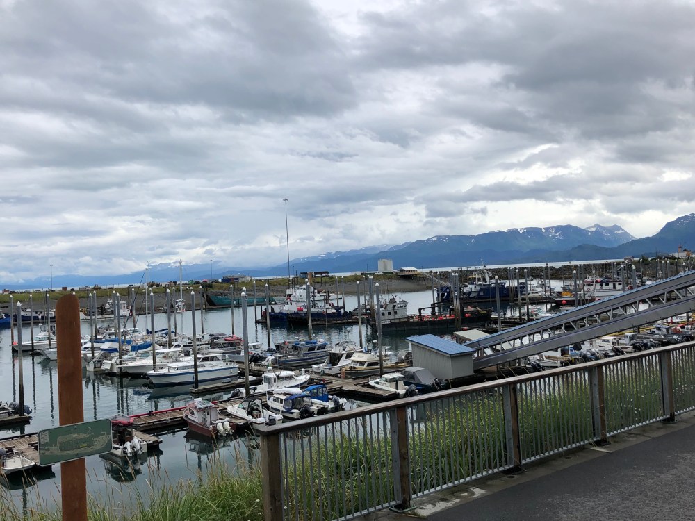 Drove the Jeep to Homer to get some fish and beer. It’s a beautiful drive, but it rained most of the way, cleared up while we were there, and rained again most of the way back. The Homer Spit has a lot of boats and touristy shops but it was fun. Had excellent fish and chips and fish tacos,