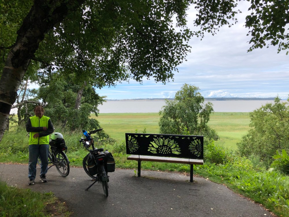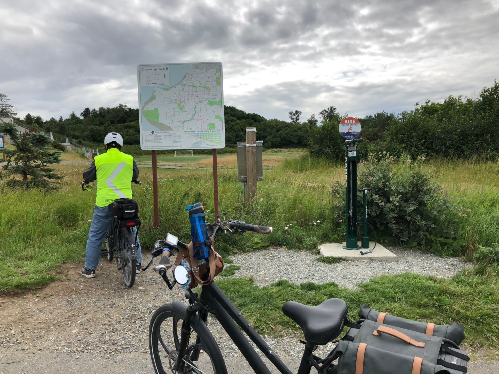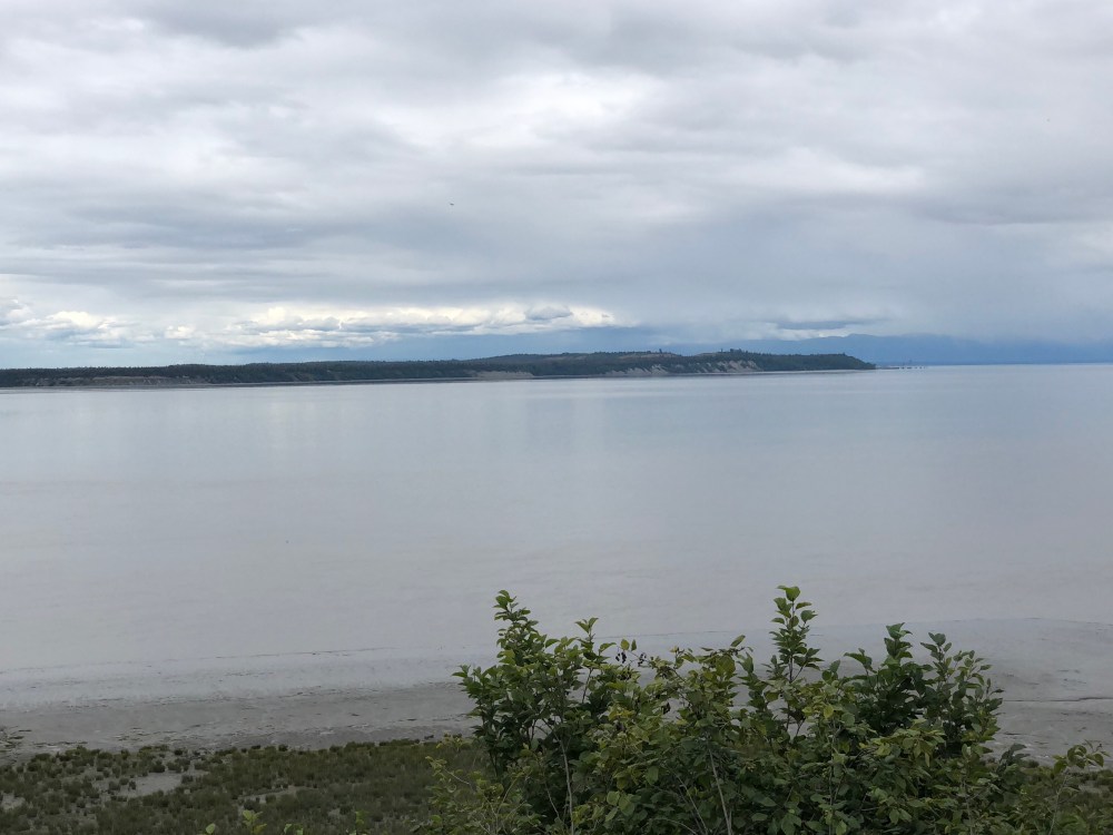 Then we rode our bikes on the Tony Knowles Costal Trail that follows the coastline of Anchorage along the Knik Arm and Cook Inlet. We were told to watch for bears and moose that can sometimes be seen along the trail. It’s 11 miles, so we rode 22 miles round trip.
