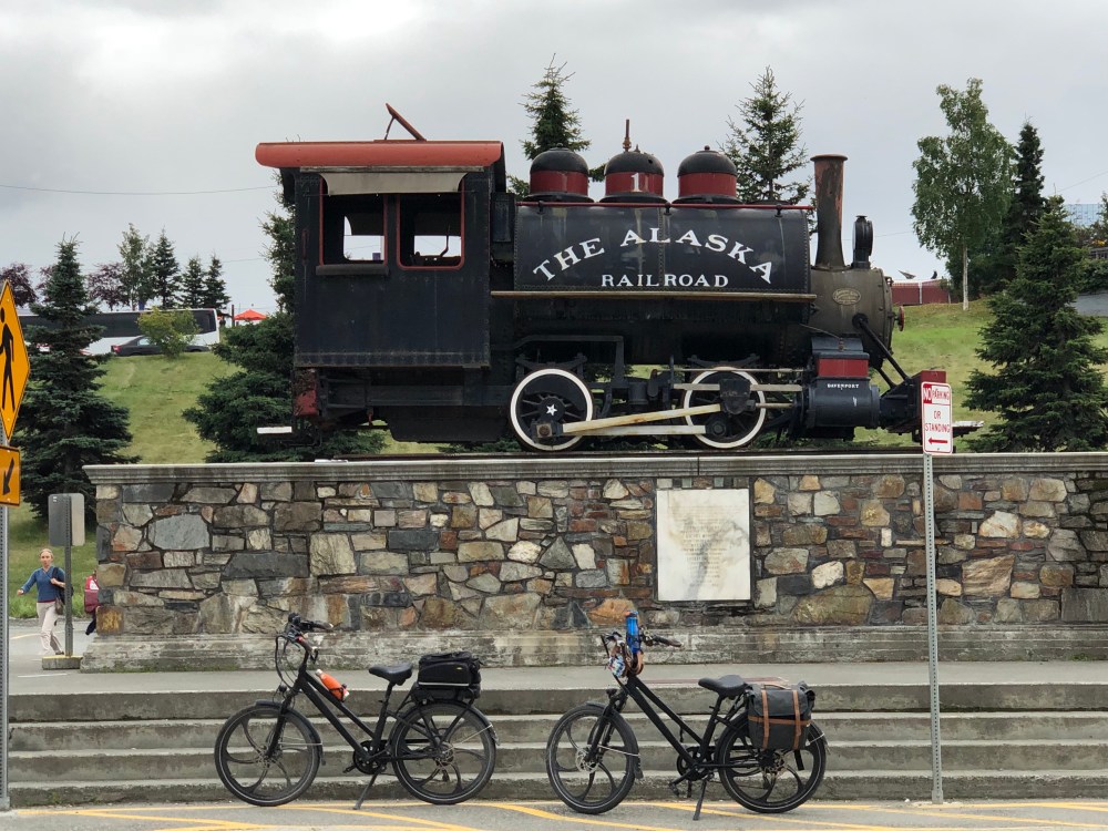 We only used our bikes today, riding from the RV park in downtown Anchorage and rode by the Alaska Railway station on the way back.