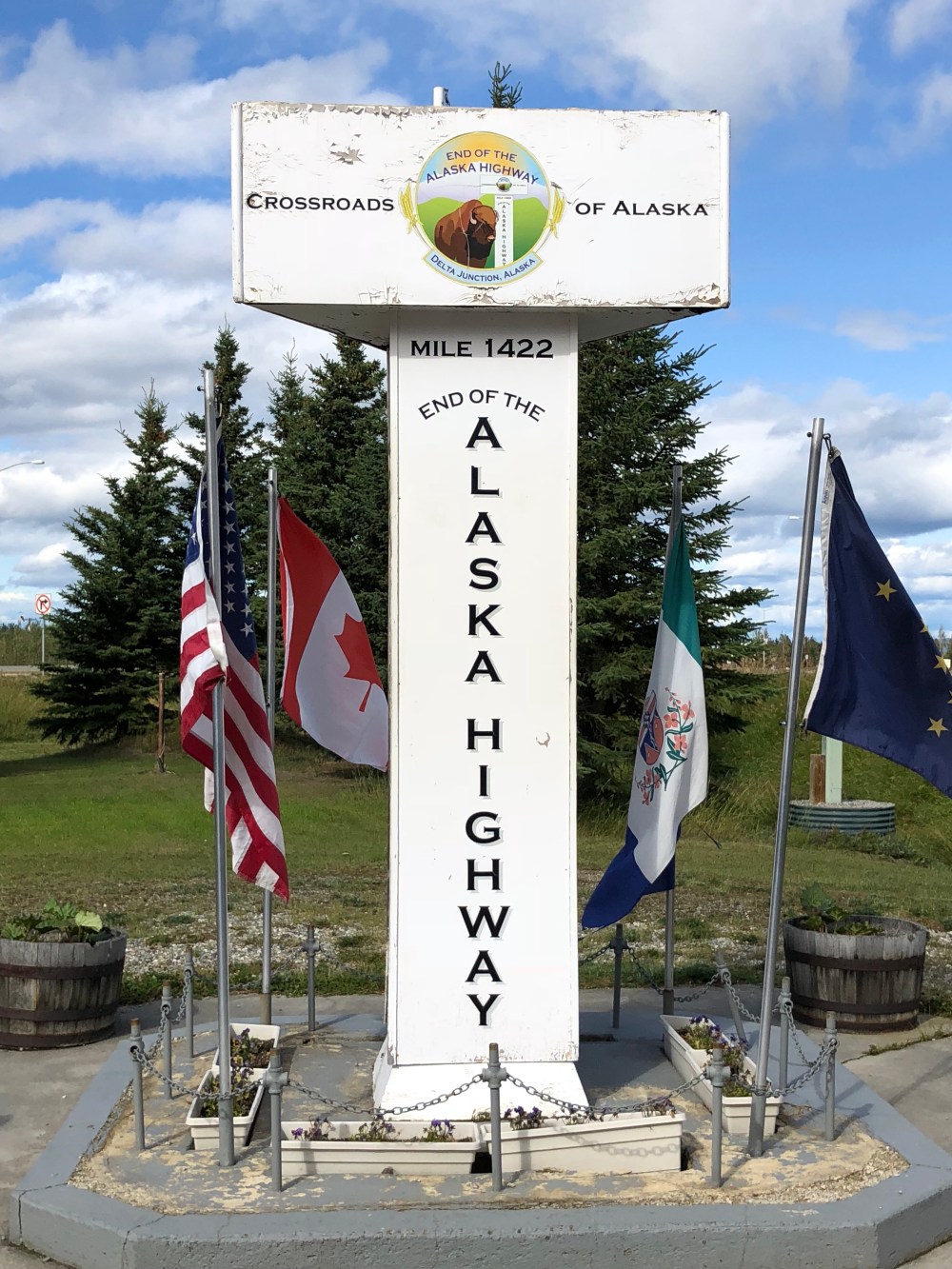 We really enjoyed Alaska – the awesome scenery (we saw Denali!), wildlife (bears, caribou, moose, Dahl sheep, fox, wolves, eagles, musk oxen, porcupine, sea lions, otters, puffins, dolphins, and whales), fresh fish (halibut and salmon), exotic meat (elk, buffalo, reindeer, and yak), outstanding craft beers (11 breweries), and friendly people, but today we began our journey home, taking the Richardson Highway out of Fairbanks to join the Alaska Highway in Dalton Junction.