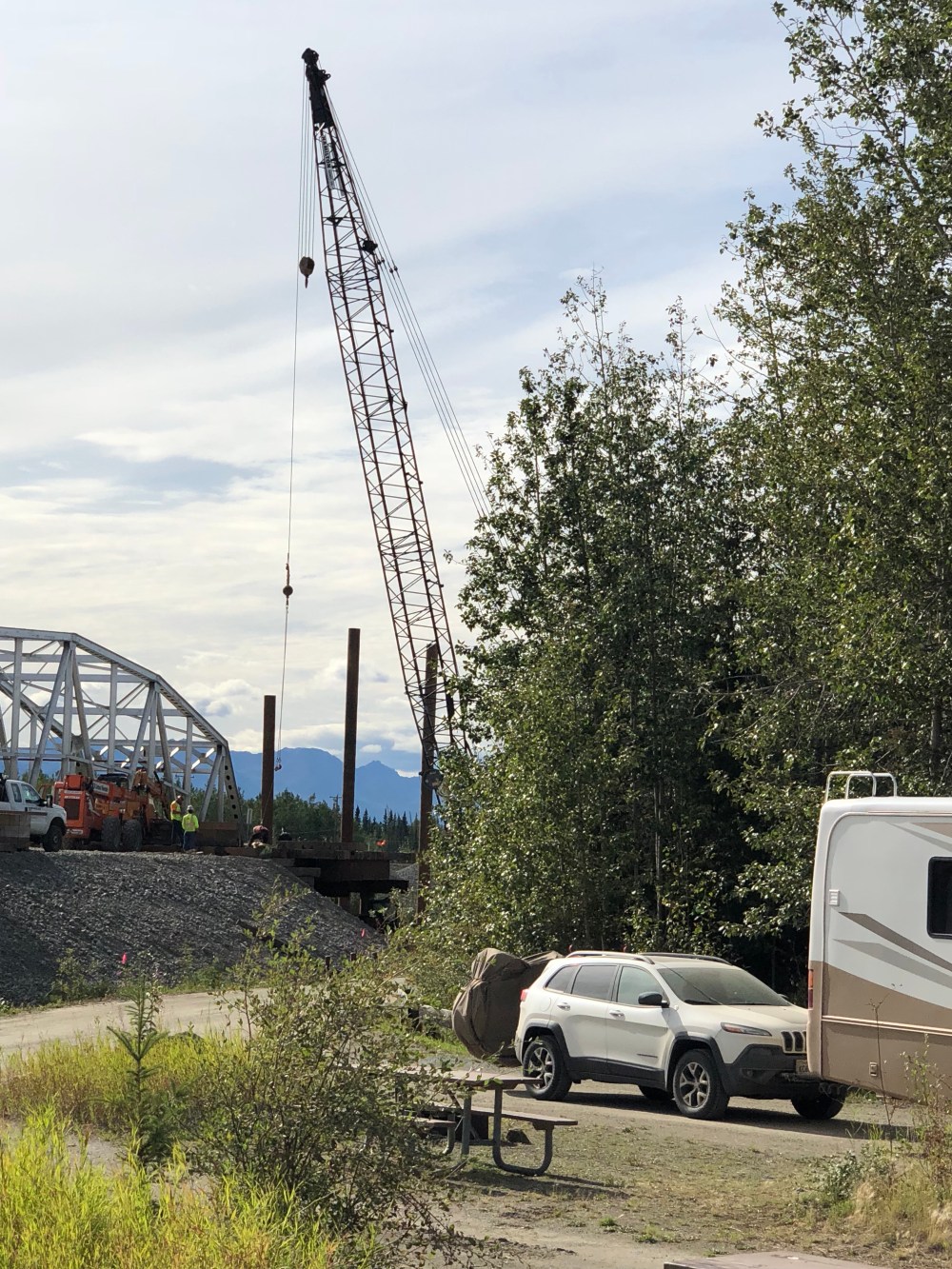 They’re doing repairs on the bridge next to the Tok River State Recreation Site where we stayed for the night. Couldn’t pass up that one up!
