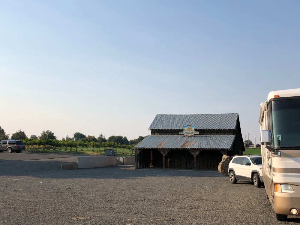 We drove through Washington today, stopping at a roadside fruit stand for fruit and veggies, and a huckleberry milk shake, Yum! Spending the night at a Harvest Host winery, Severino, near Yakima.