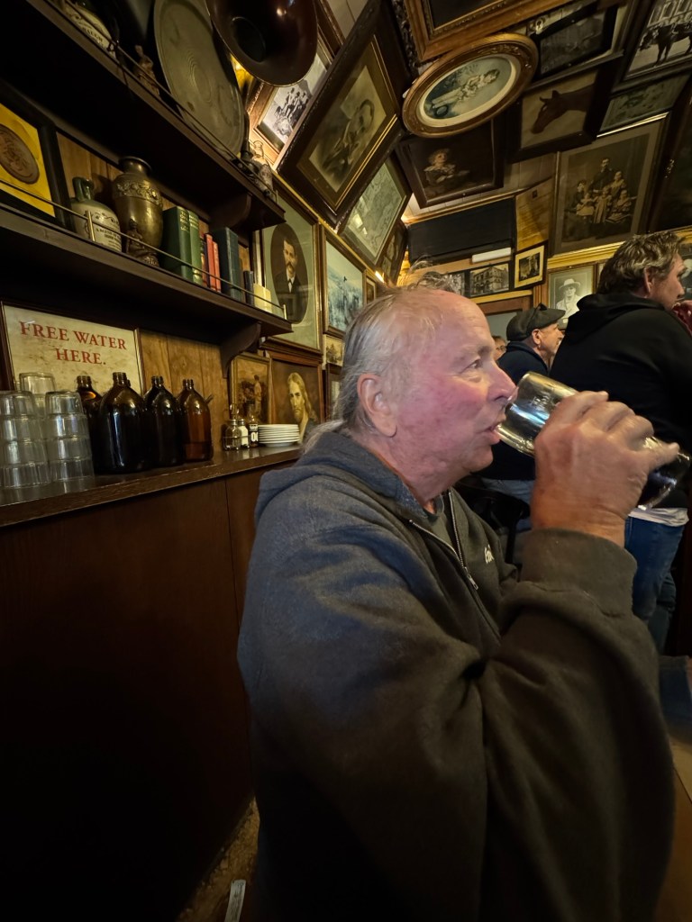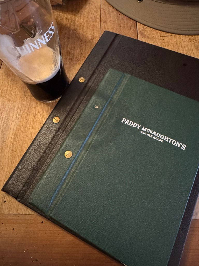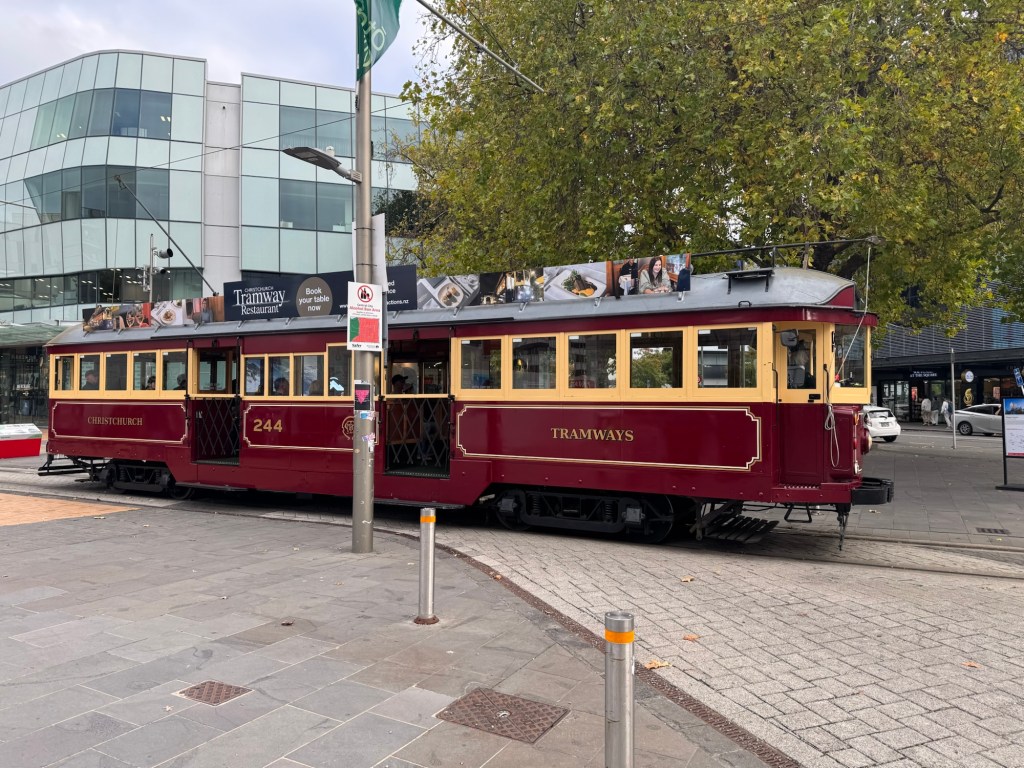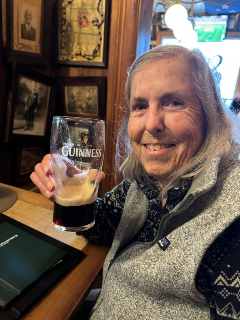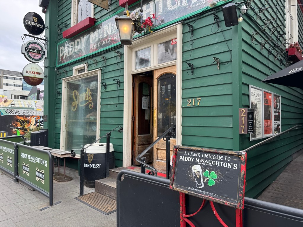 4/5/25: After returning the camper about 1 pm, we decided to do a quick tour of Christchurch by taking the Hop-On-Hop-Off trolly. Ended the day at Paddy McNaughton’s Irish Pub. Note the eclectic decor… the art work is hung on the ceiling, and there are some creative seating options!