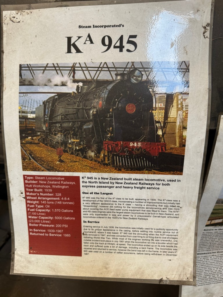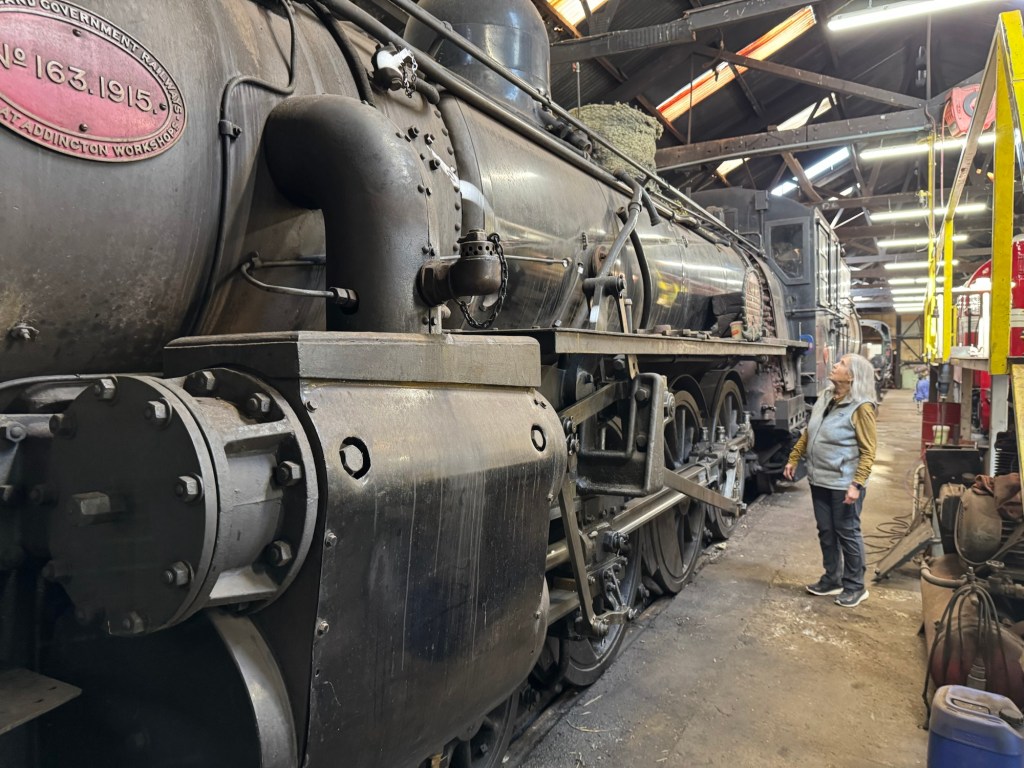 4/10/25: Leaving Wellington, we headed north to our next destination, River Rock Air B&B at 22 Whakaraparapa (yes, that’s the name of the street!) in Kakahi. but before we got there, we discovered Steam Incorporated – they restore and maintain the heritage railway. No trains were running that day, but we were able to tour the facility.